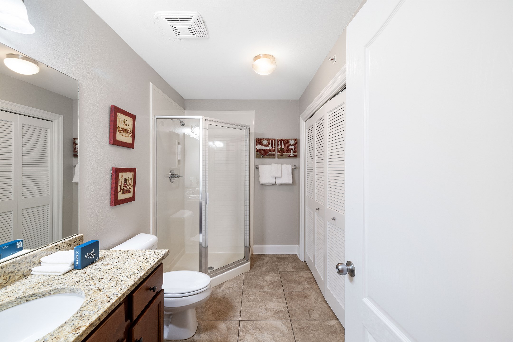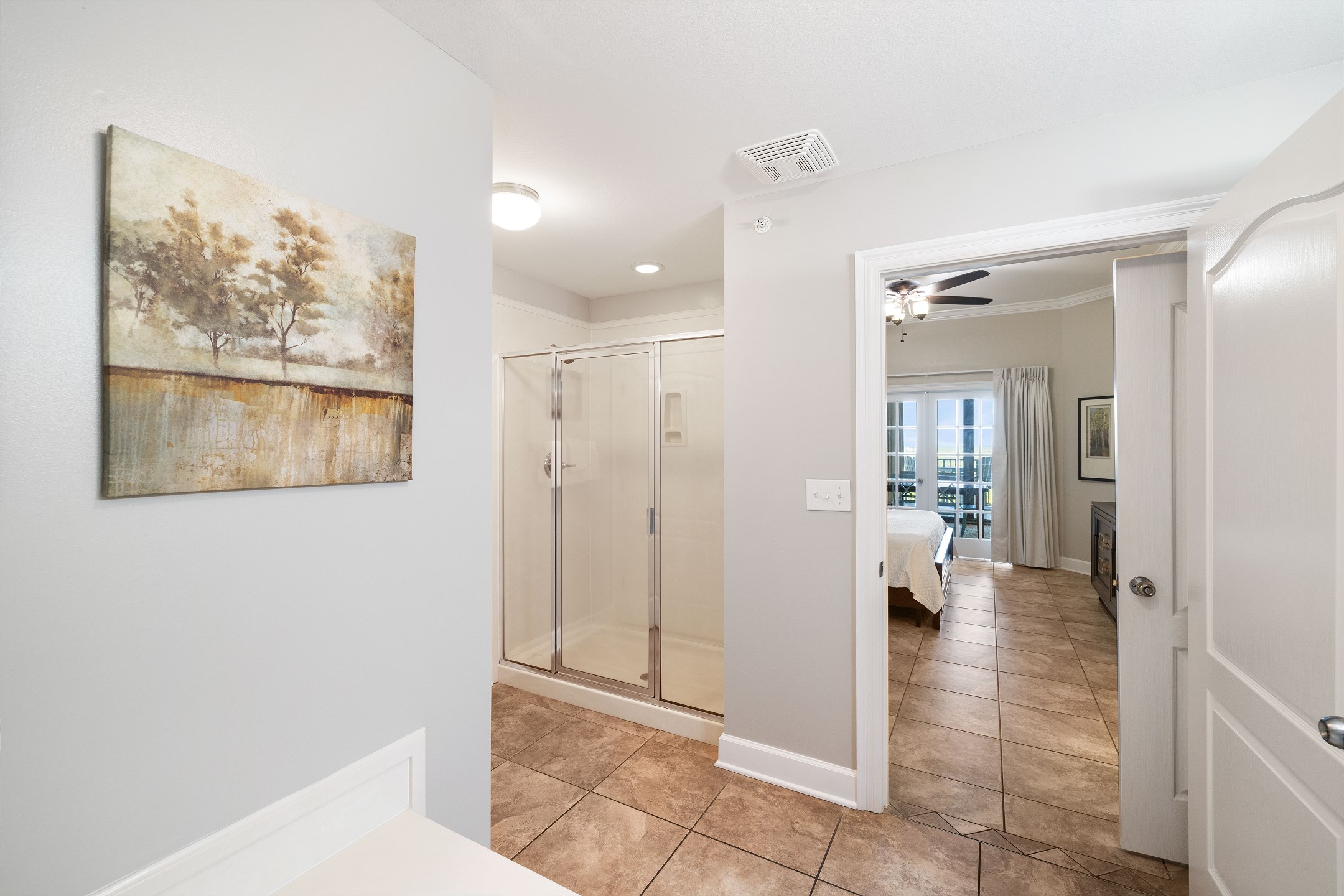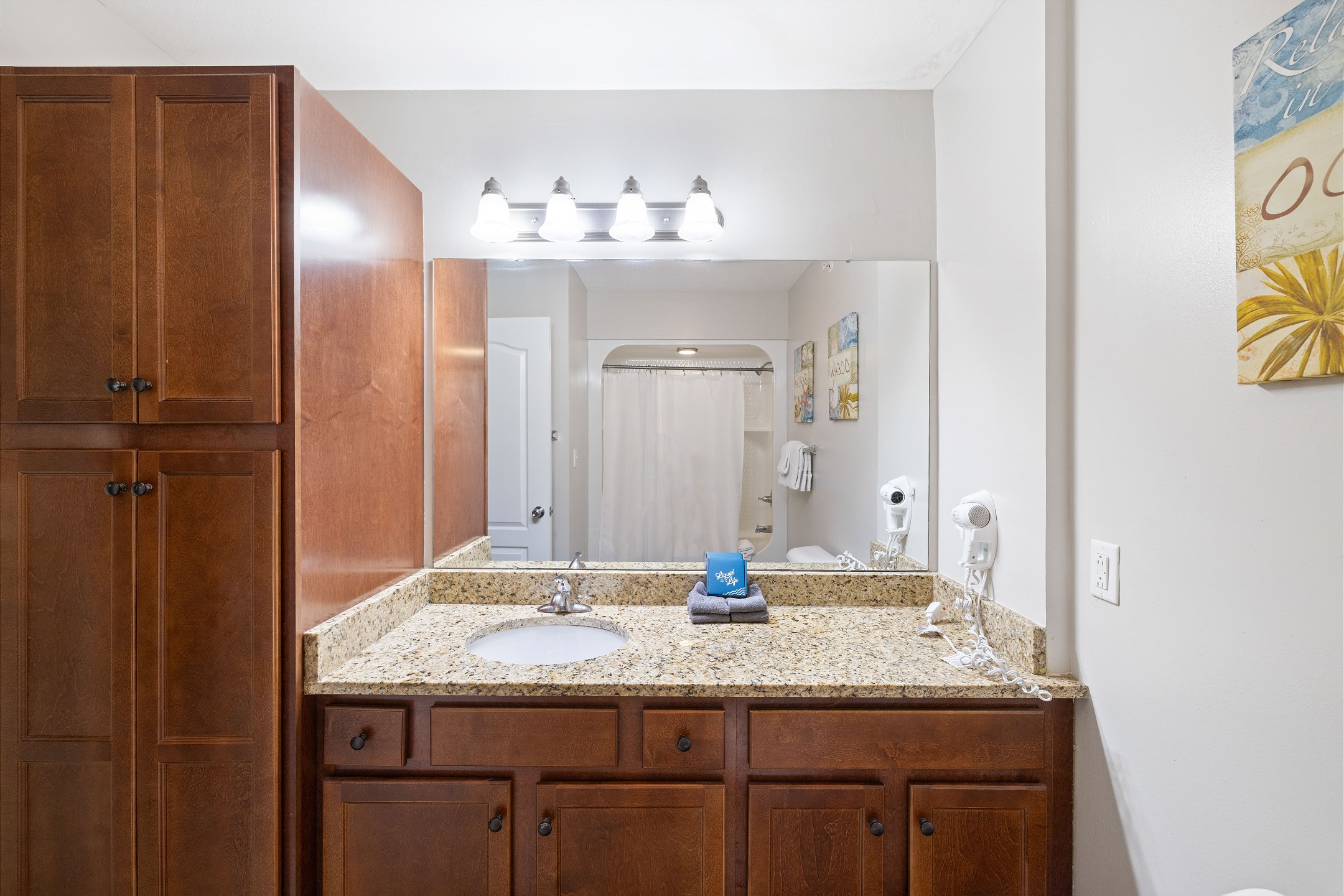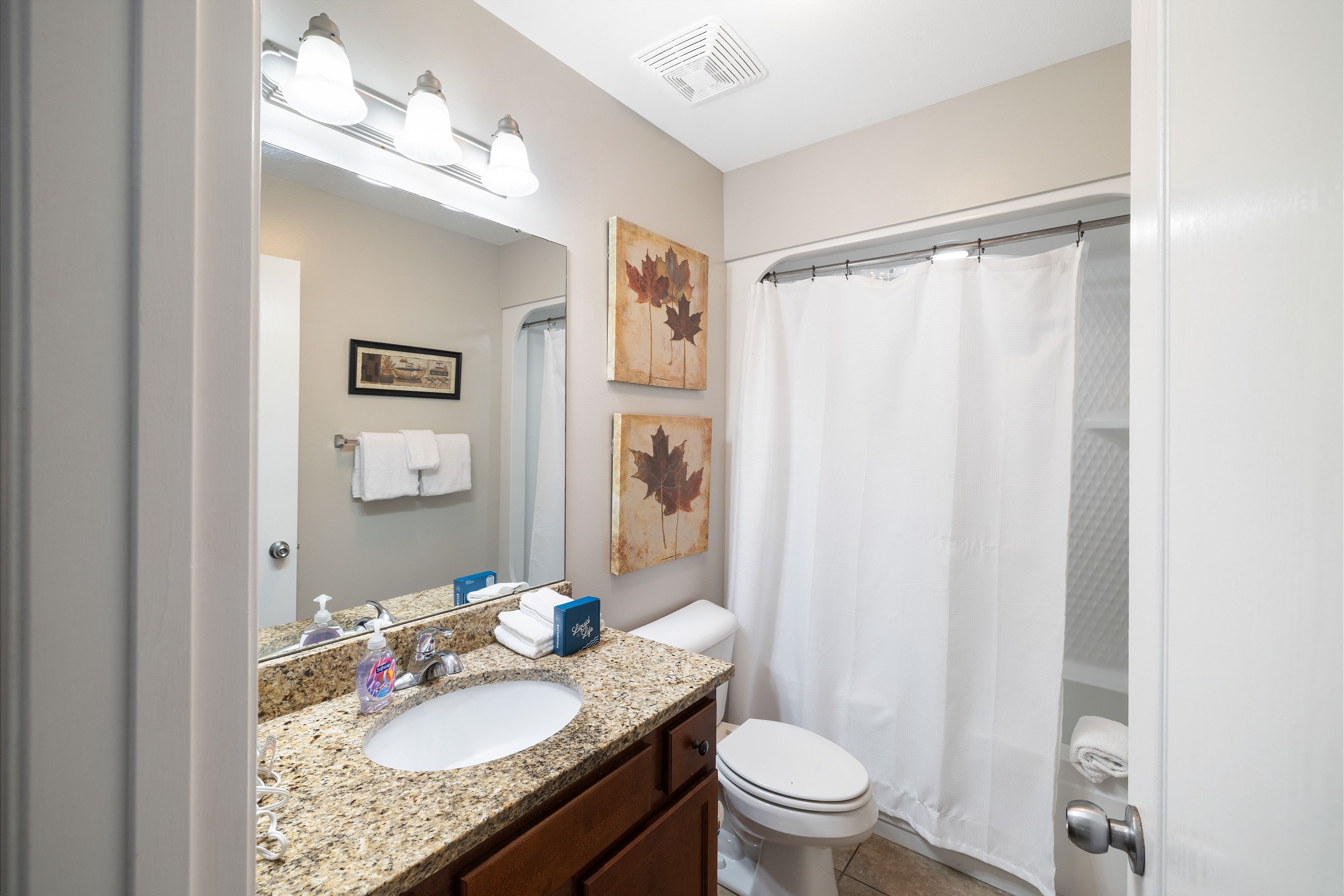 The primary suite is a private sanctuary with a king bed and an ensuite bathroom featuring a jacuzzi tub and a walk-in shower. The second bedroom also includes a king bed, while the third bedroom is designed for flexibility and comfort with two queen beds and a private ensuite bathroom. A fourth full bathroom with a walk-in shower adds extra convenience, and a sofa sleeper in the living room accommodates additional guests.