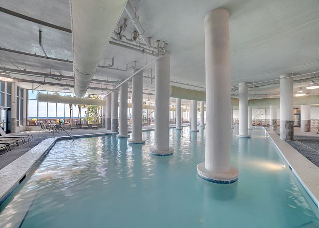 Experience the ultimate beachfront luxury at Oasis at Orange Beach, where every moment is framed by spectacular views. Our guests are welcomed with an array of outdoor amenities, including a captivating outdoor pool, lazy river, hot tubs, and a twisty water slide, perfect for guests of all ages. Enjoy our refreshing indoor and outdoor pools, including a newly opened adults-only oasis for tranquil moments of relaxation. The little ones can delight in the kiddie pool, splash pad, and kids play area, ensuring fun for the entire family. Relax in our large indoor heated pool, complemented by soothing hot tubs for a complete unwinding experience. The grilling area provides a lovely spot for outdoor cooking and socializing. Indulge in our on-site café & bar, featuring a tempting menu to satisfy your cravings. Sports enthusiasts will appreciate the basketball courts, tennis courts, pickleball courts, and putting green, offering an active way to enjoy the outdoors. The exercise room and sauna offer a great combination of fitness and relaxation. For added fun, guests can enjoy our outdoor shuffleboard area or visit the arcade area for more gaming fun!