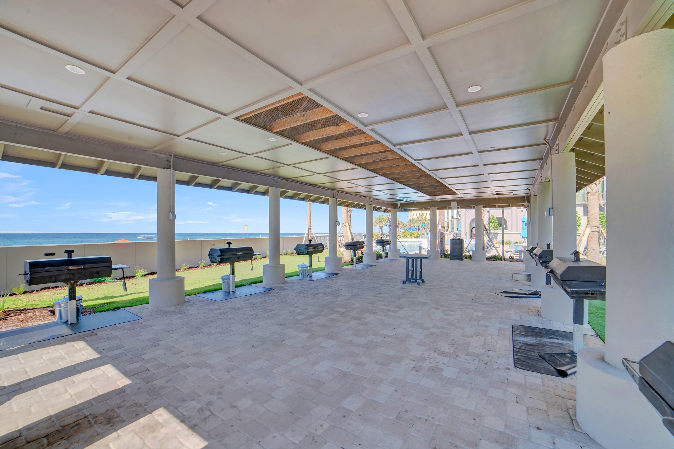 Experience the ultimate beachfront luxury at Oasis at Orange Beach, where every moment is framed by spectacular Gulf Front views. Our guests are welcomed with an array of outdoor amenities, including a captivating outdoor pool, lazy river, hot tubs, and a twisty water slide, perfect for guests of all ages. Enjoy our refreshing indoor and outdoor pools, including a newly opened adults-only oasis for tranquil moments of relaxation. The little ones can delight in the kiddie pool, splash pad, and kids play area, ensuring fun for the entire family. Relax in our large indoor heated pool, complemented by soothing hot tubs for a complete unwinding experience. The grilling area provides a lovely spot for outdoor cooking and socializing. Indulge in our on-site café & bar, featuring a tempting menu to satisfy your cravings. Sports enthusiasts will appreciate the basketball courts, tennis courts, pickleball courts, and putting green, offering an active way to enjoy the outdoors. The exercise room and sauna offer a great combination of fitness and relaxation. For added fun, guests can enjoy our outdoor shuffleboard area or visit the arcade area for more gaming fun!