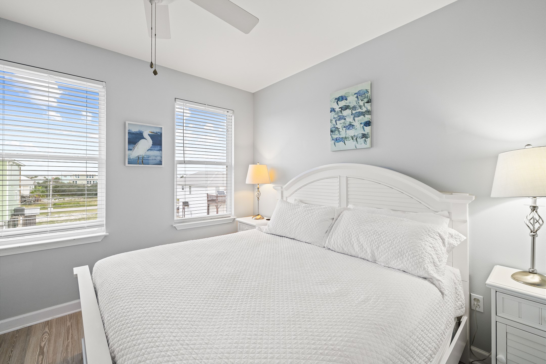 Outside, enjoy the refreshing Gulf breeze from the covered deck or gather in the shaded picnic area under the house. The home offers parking for five to six cars and is just a short walk from the beach, the community pool, and the neighborhood fishing pier across the street on the bay.