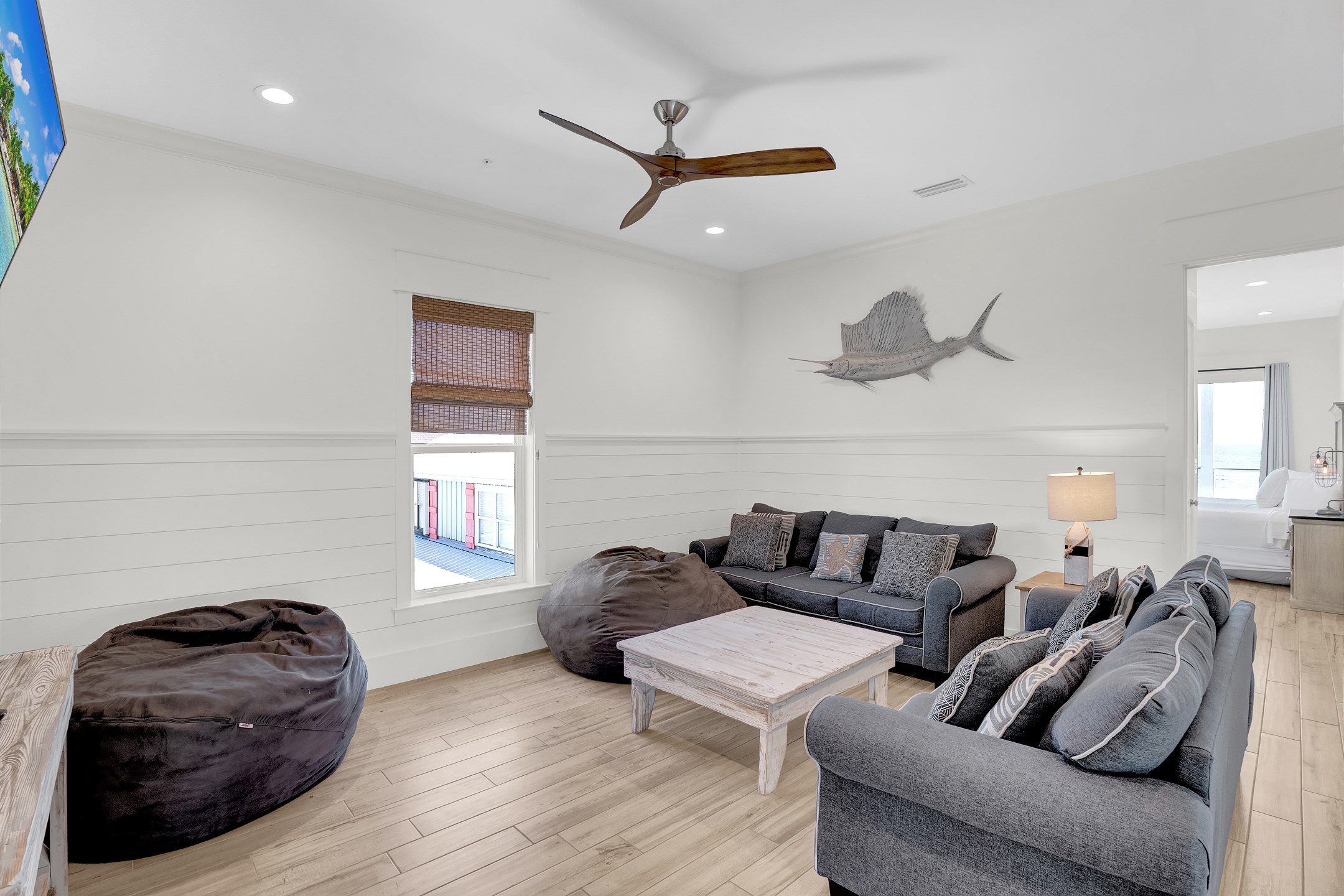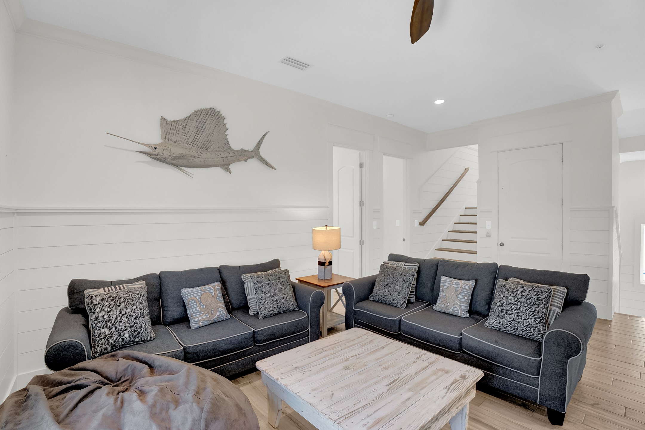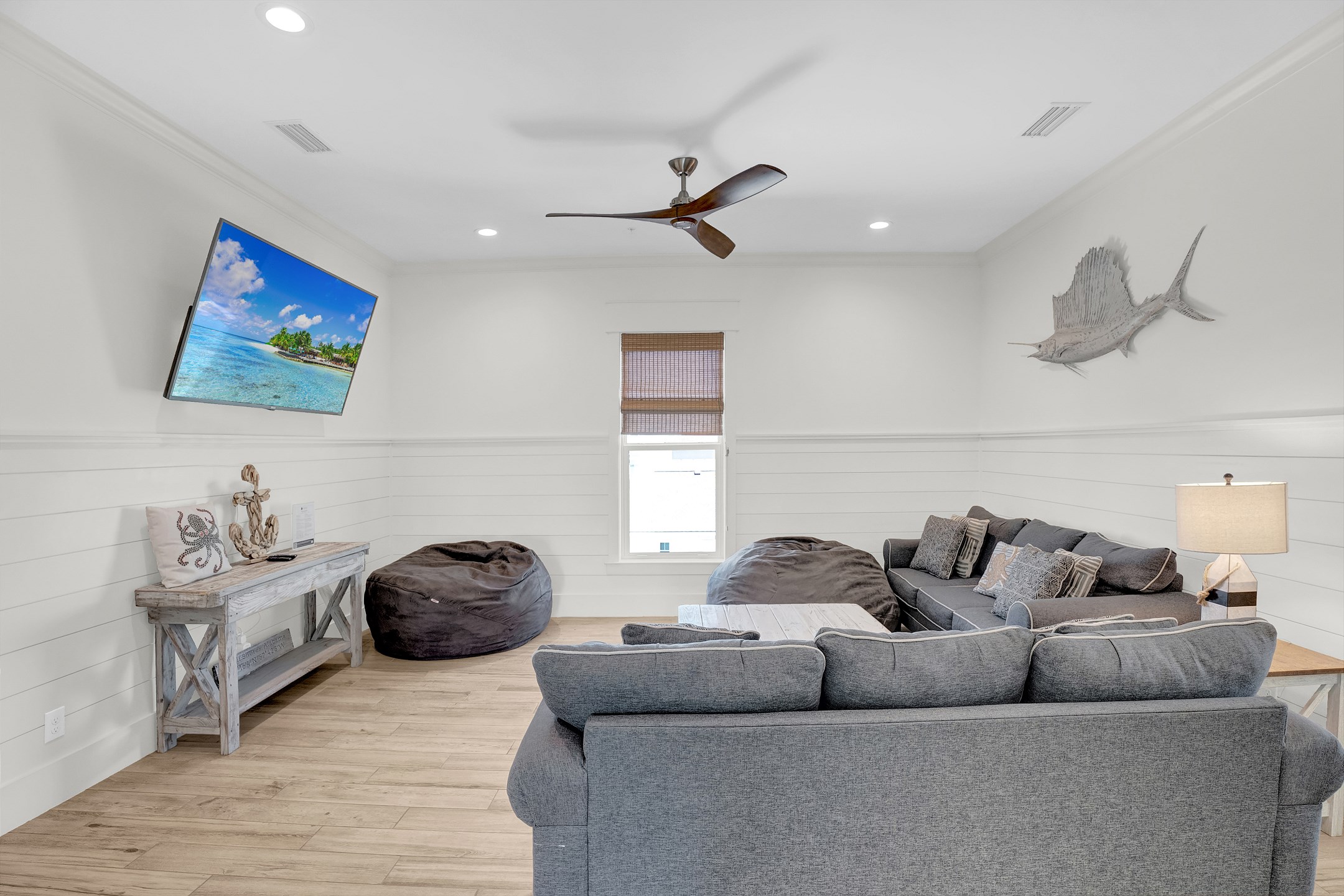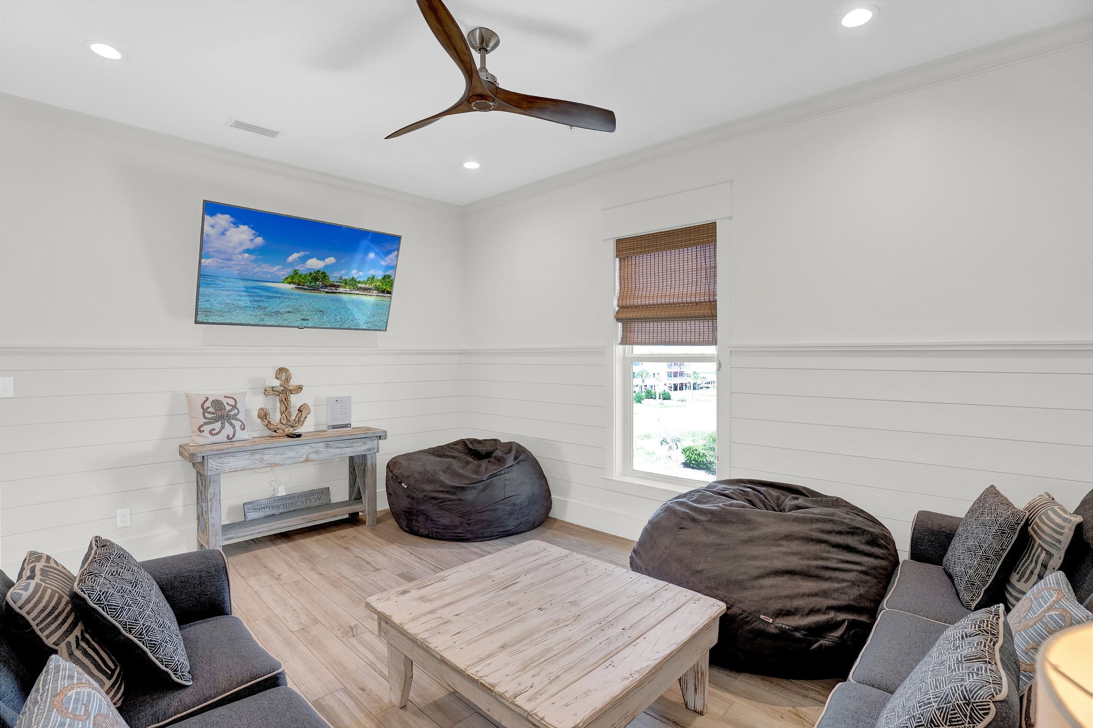 Welcome to Tip Sea, a luxurious Gulf Shores vacation home with eight bedrooms and eight and a half bathrooms. This spacious retreat comfortably sleeps up to twenty-two guests and features a gulf front private pool just steps from the sand.
