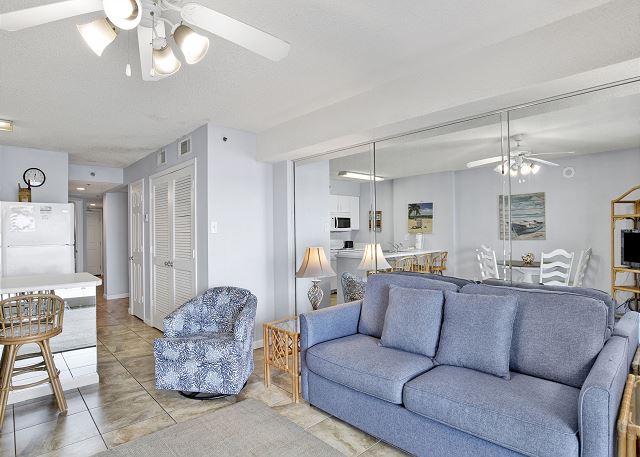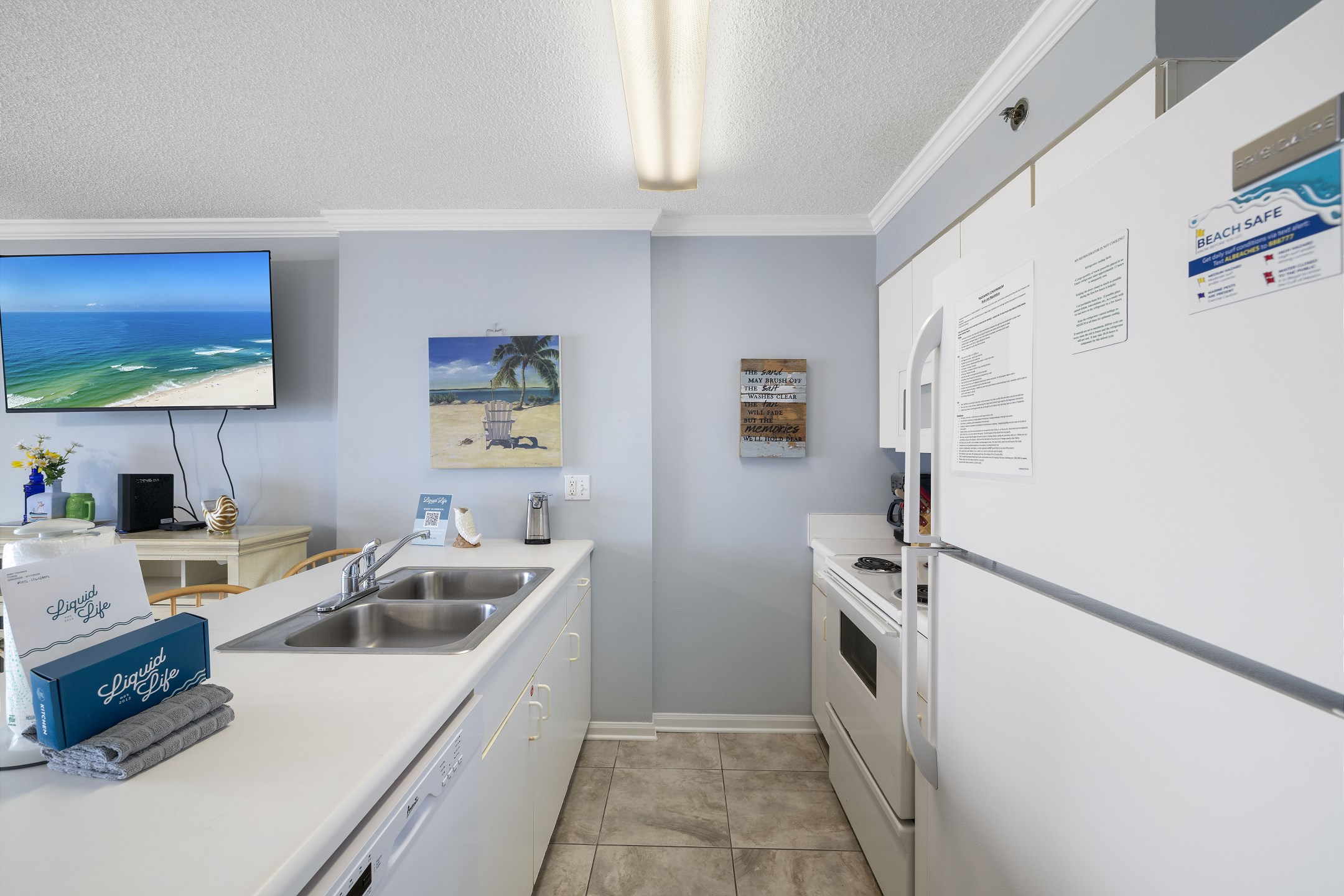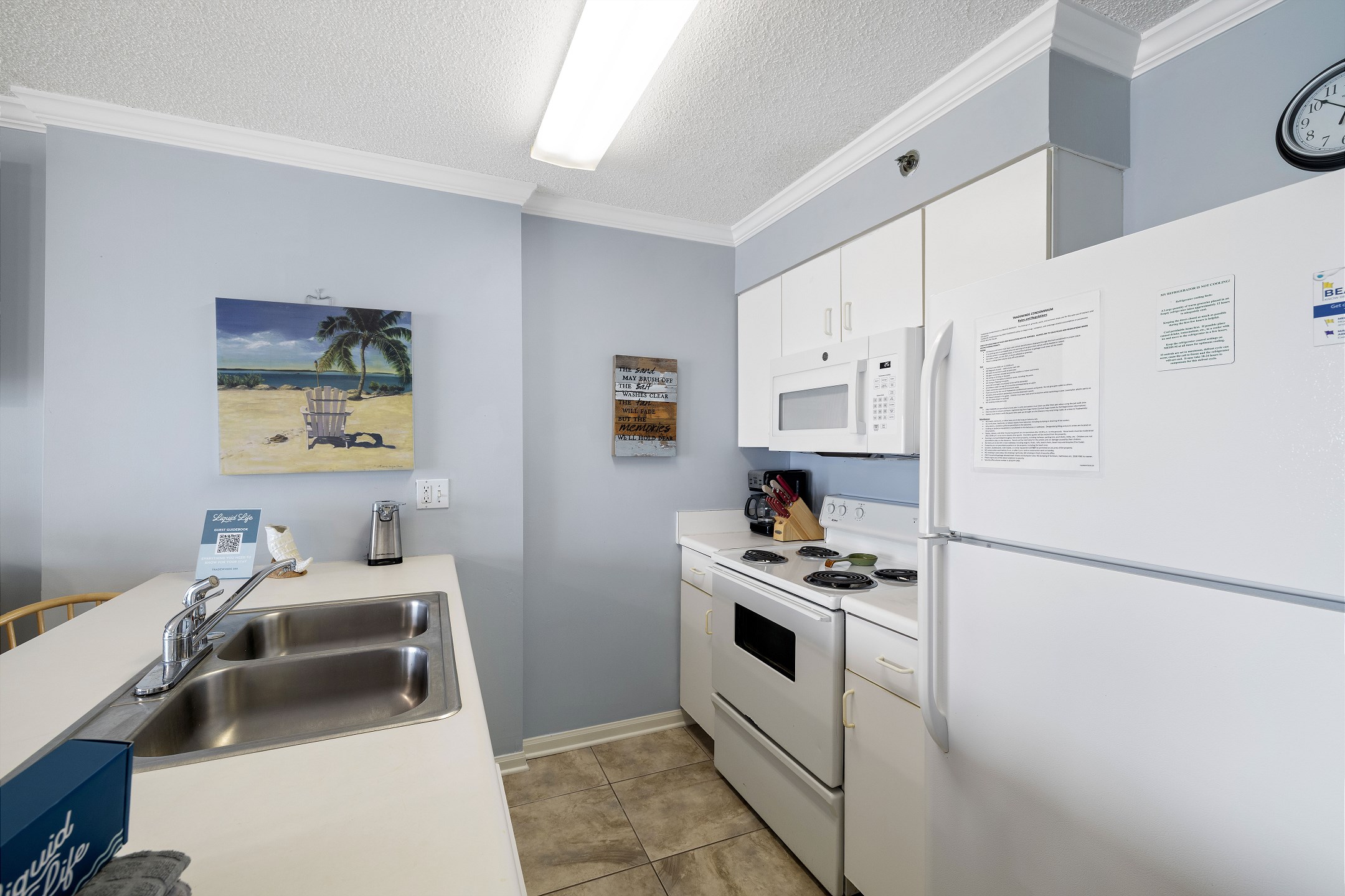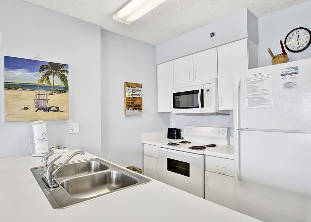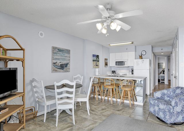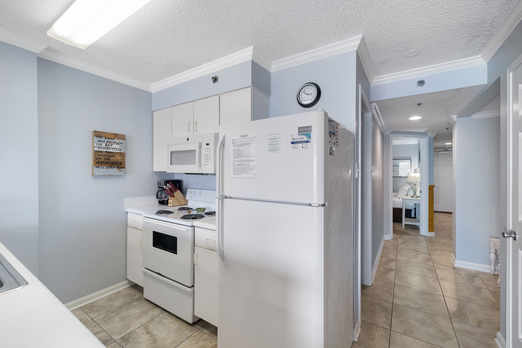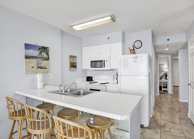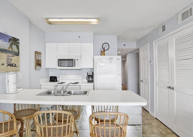 Embrace the coastal charm of this beautiful condo, featuring tile floors throughout the living area for a clean and refreshing feel. The fully equipped kitchen allows you to easily prepare delicious meals, whether you're making a quick breakfast before hitting the beach or a full dinner to enjoy together.