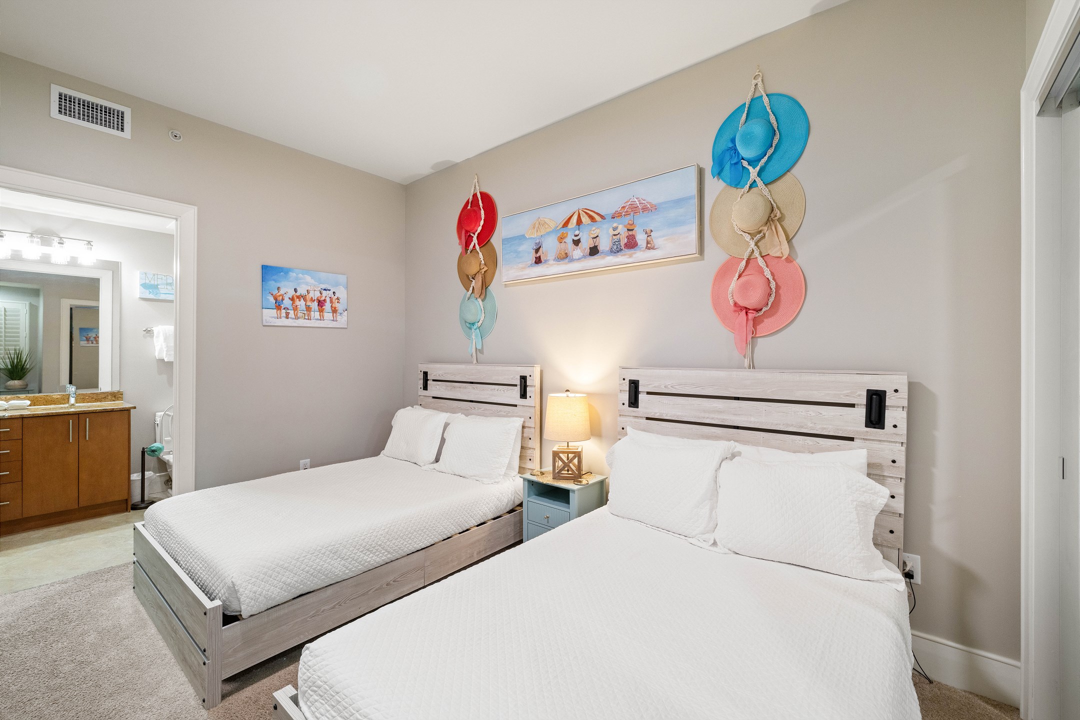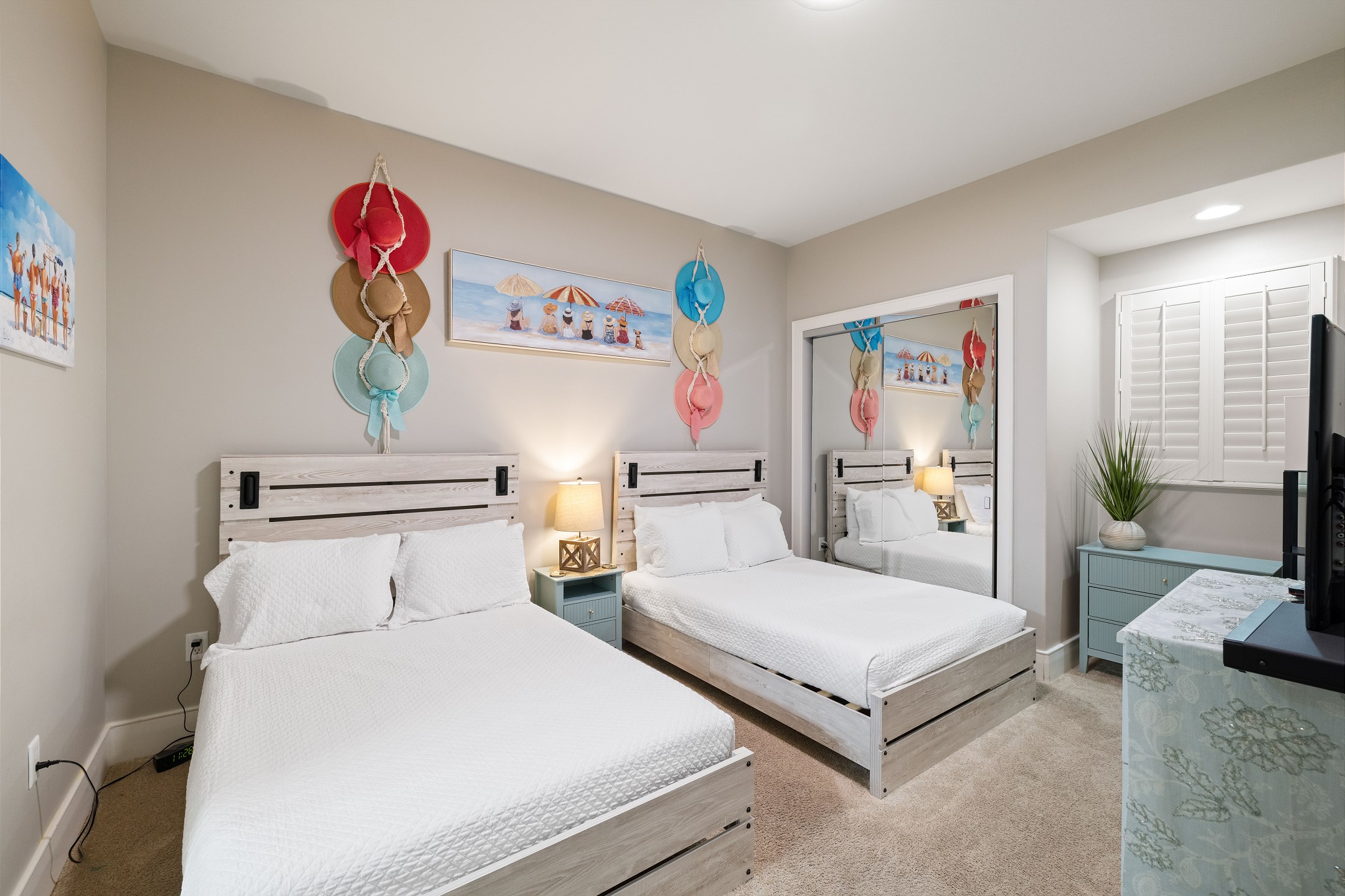 Inside, the Primary suite awaits with a King bed and a luxurious Primary bath featuring a Jacuzzi tub and a separate walk-in shower. The second bedroom offers another King bed for additional comfort and convenience, while the third bedroom is perfect for families or groups with its two Full beds. Each bedroom is equipped with a flat-screen TV, ensuring entertainment for everyone.