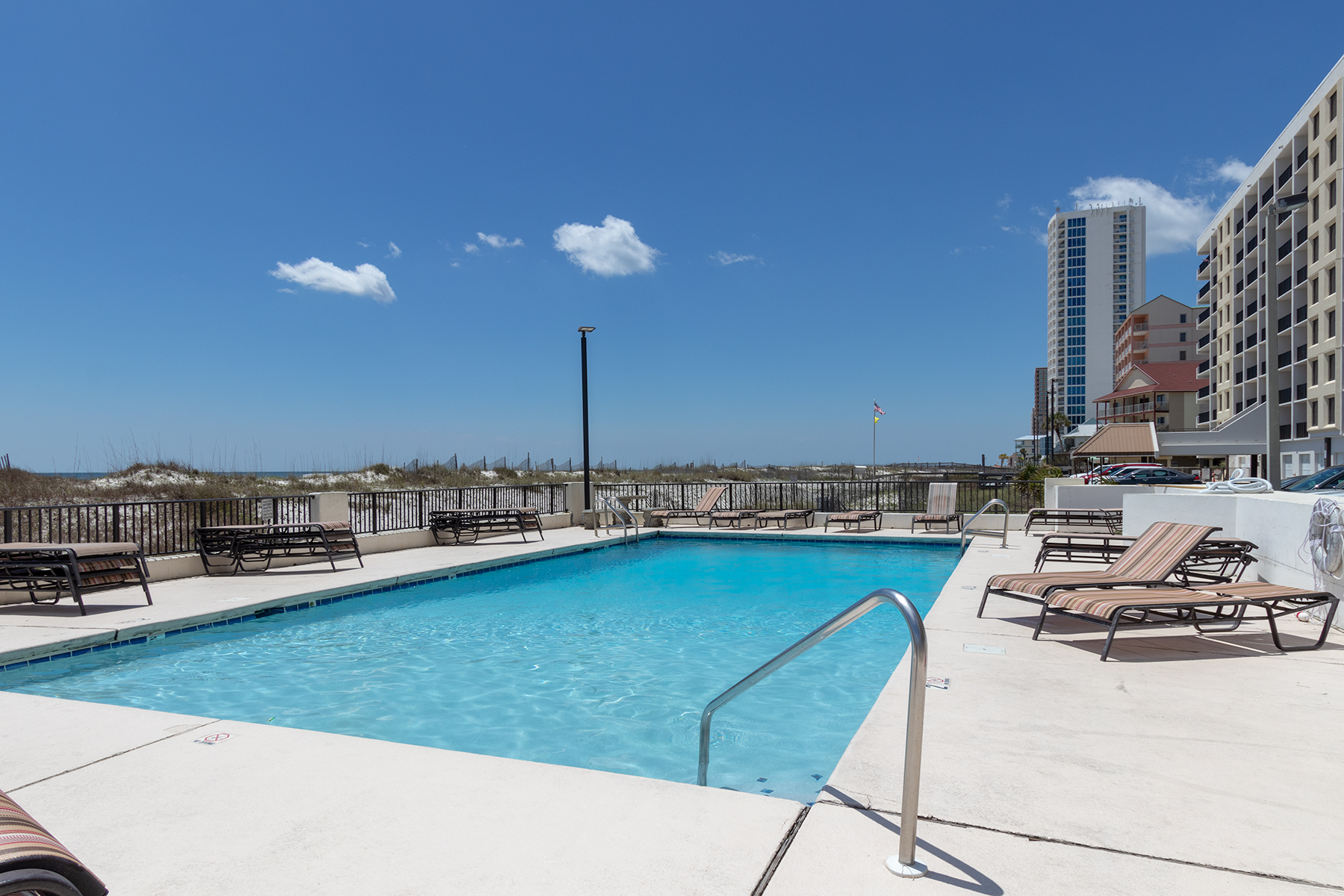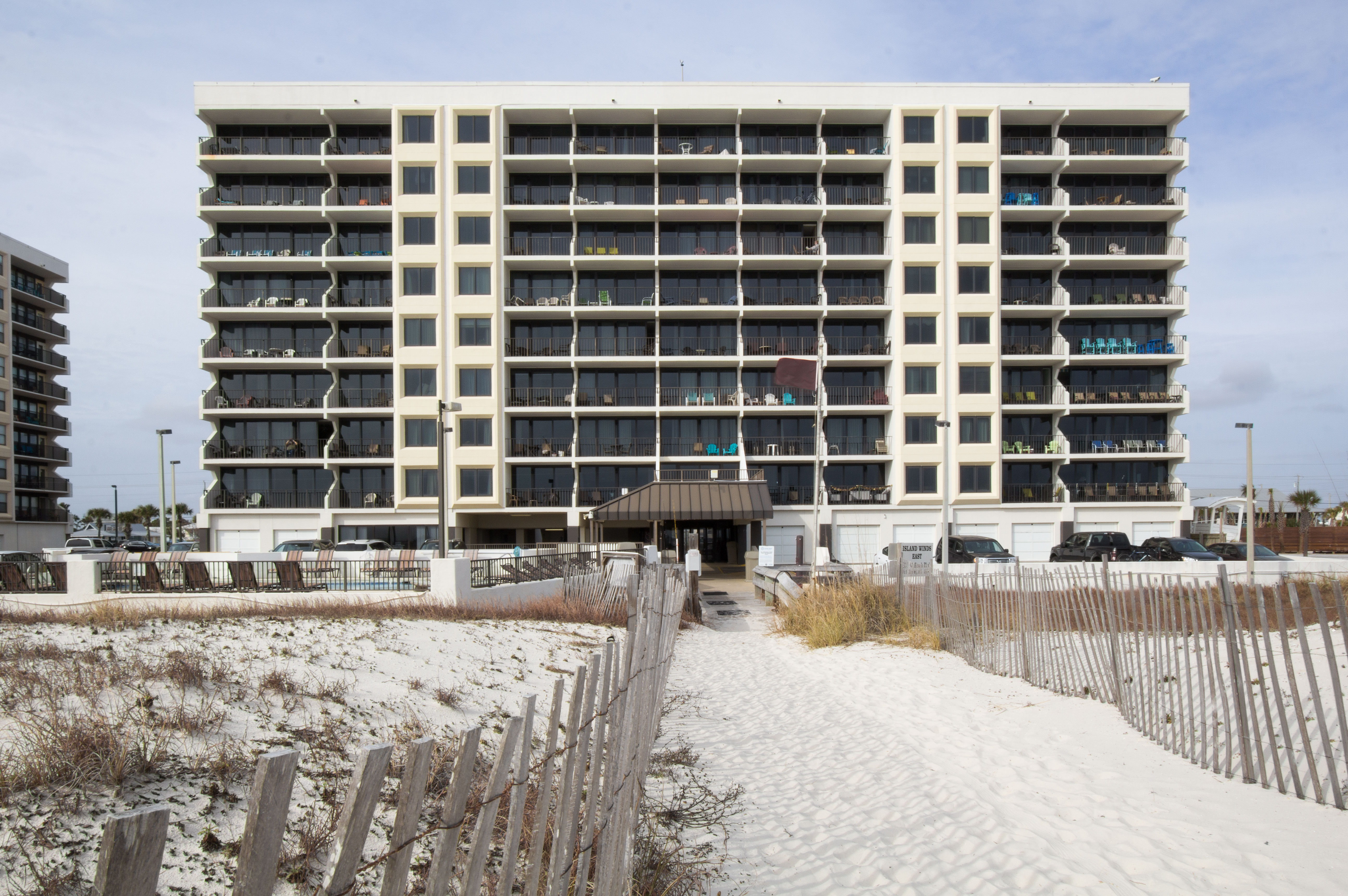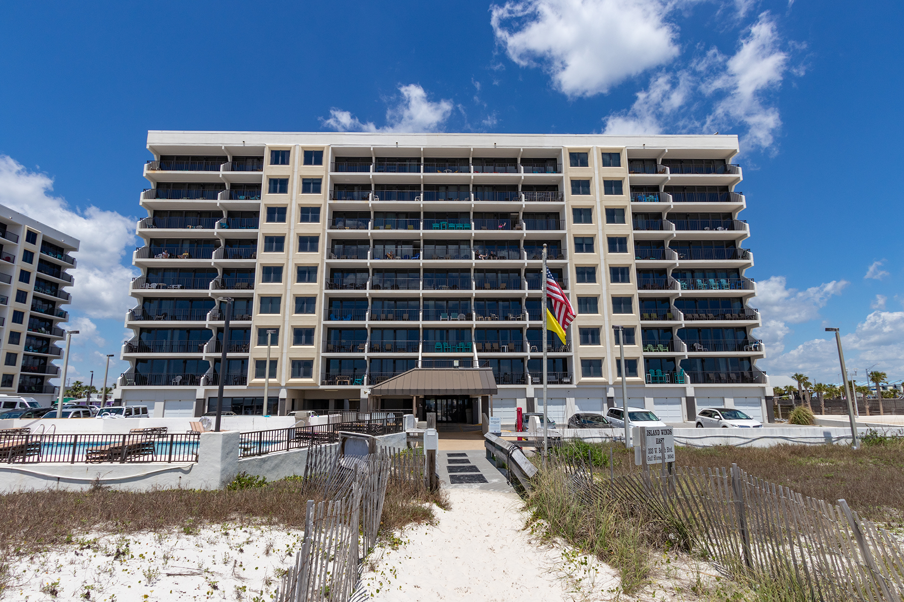 Located directly on the beach in Gulf Shores, Island Winds East offers comfort, convenience, and beautiful Gulf views for a relaxing coastal getaway. Guests can enjoy a refreshing outdoor pool, perfect for both lounging and play, or take a short stroll down the boardwalk for easy access to the soft white sand.