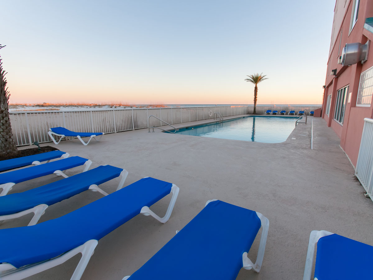 Located directly on the Gulf in Gulf Shores, Royal Palms offers a relaxing beachfront escape with amenities for every season. Guests can enjoy a sparkling outdoor pool overlooking the beach, a heated indoor pool for year-round swimming, and a hot tub perfect for unwinding after a day in the sun.