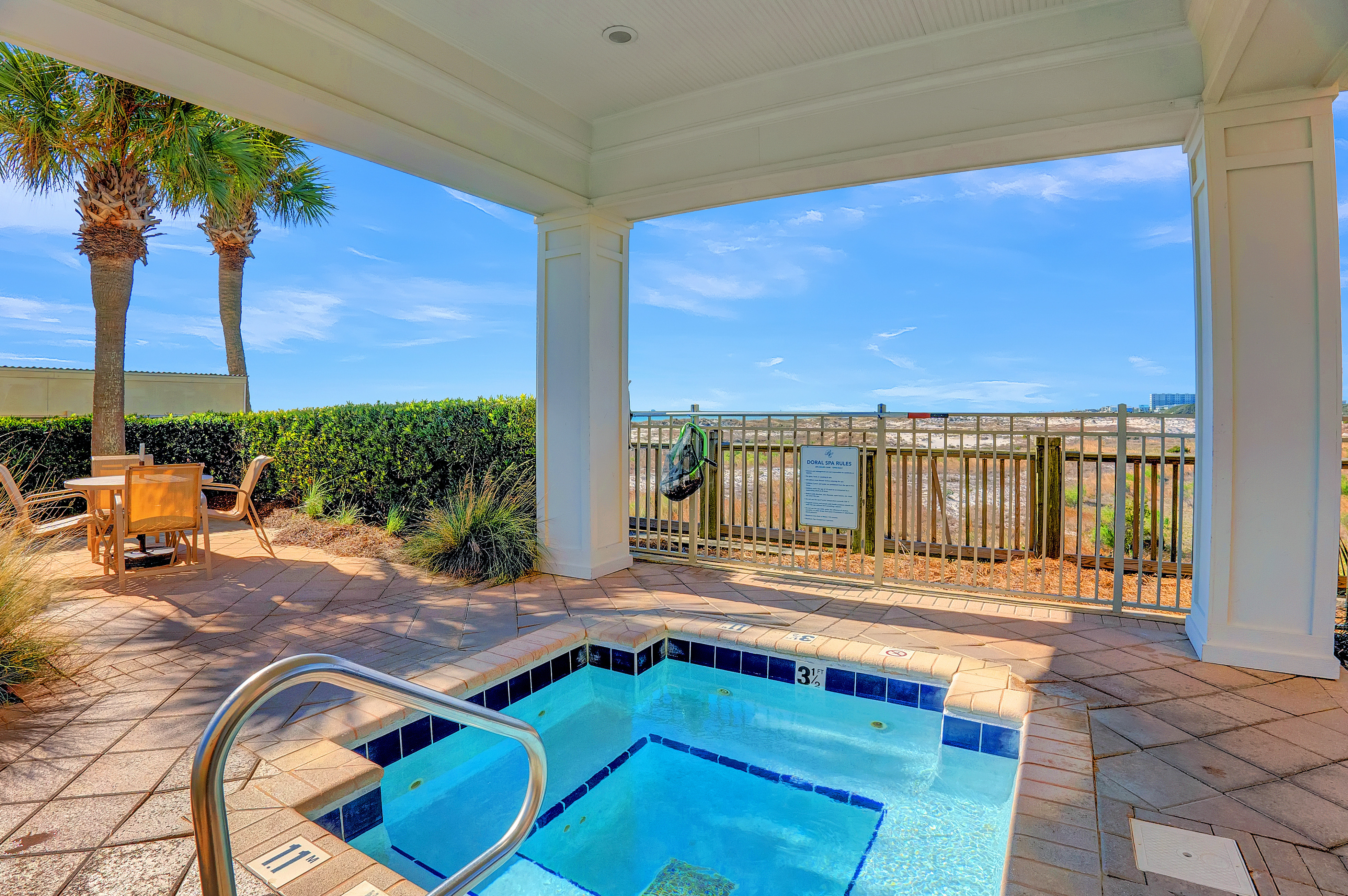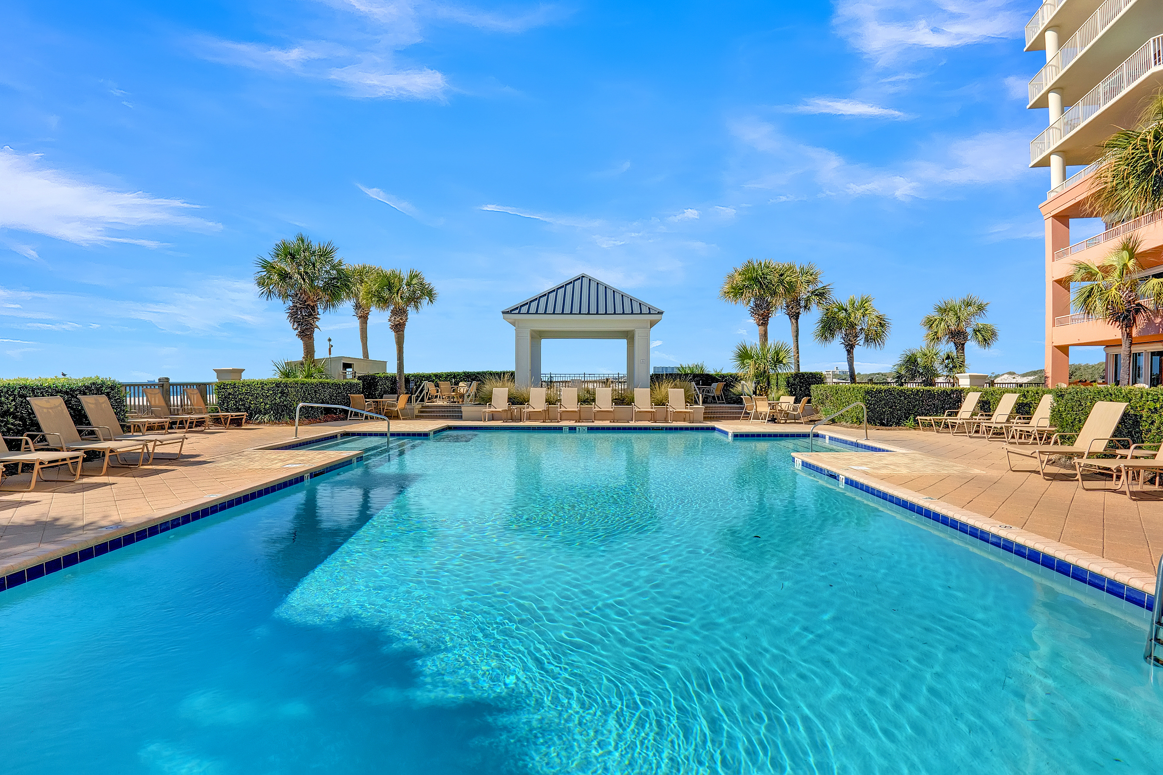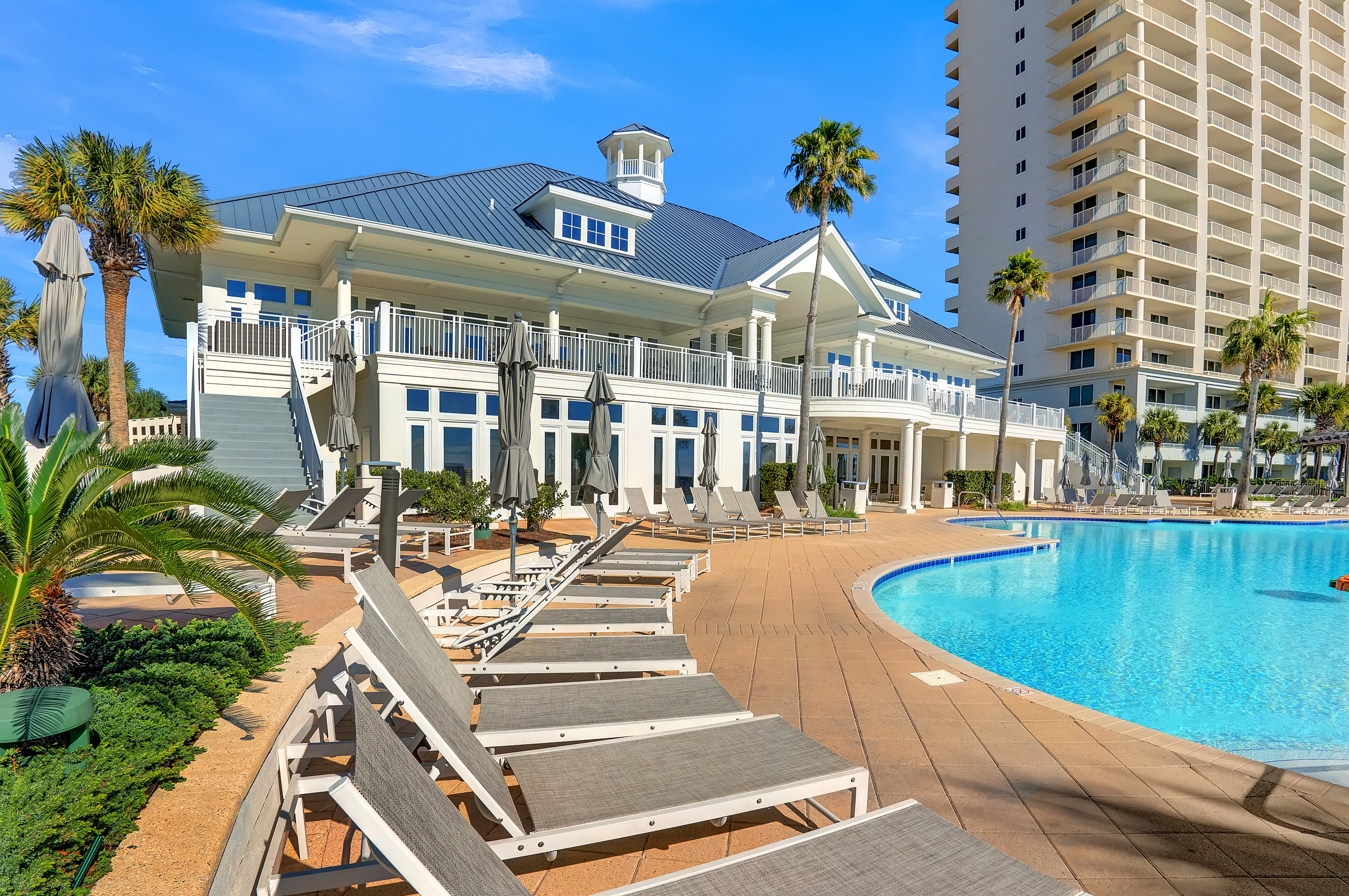 At the heart of the property lies the Gulf-front Clubhouse, a 26,000-square-foot hub featuring a heated indoor pool, outdoor pool (heated seasonally), kiddie pool, fitness center, game room, locker rooms, steam room, sauna, and a full-service spa and salon. Guests can enjoy coastal dining at the award-winning Coast Restaurant, offering fresh seafood and sushi by Chef Hamme, or grab a casual bite at the seasonal Gulfside Bar and Grill. (Please note: Clubhouse amenities require a guest fee, payable at the Clubhouse reception desk.)