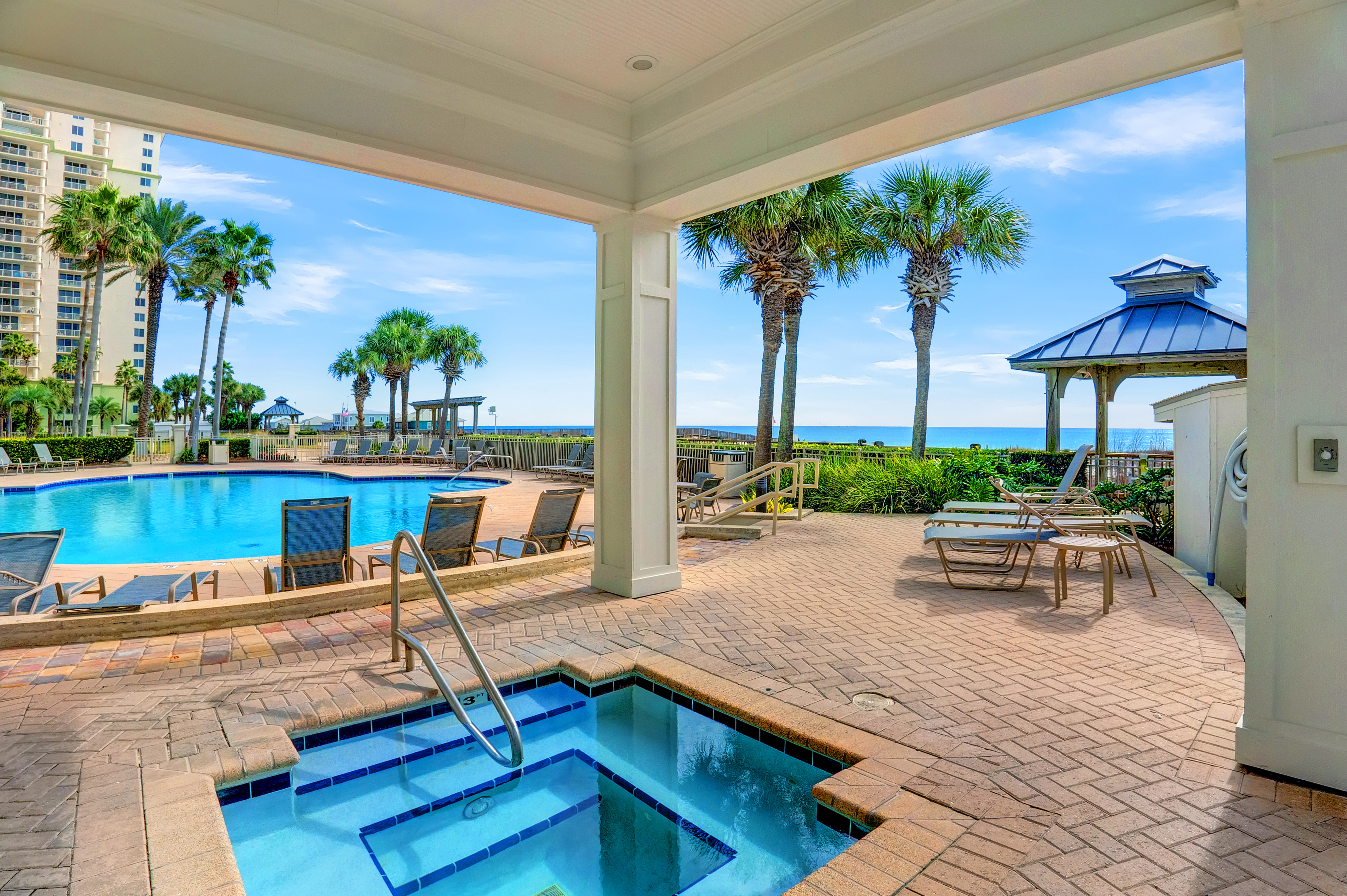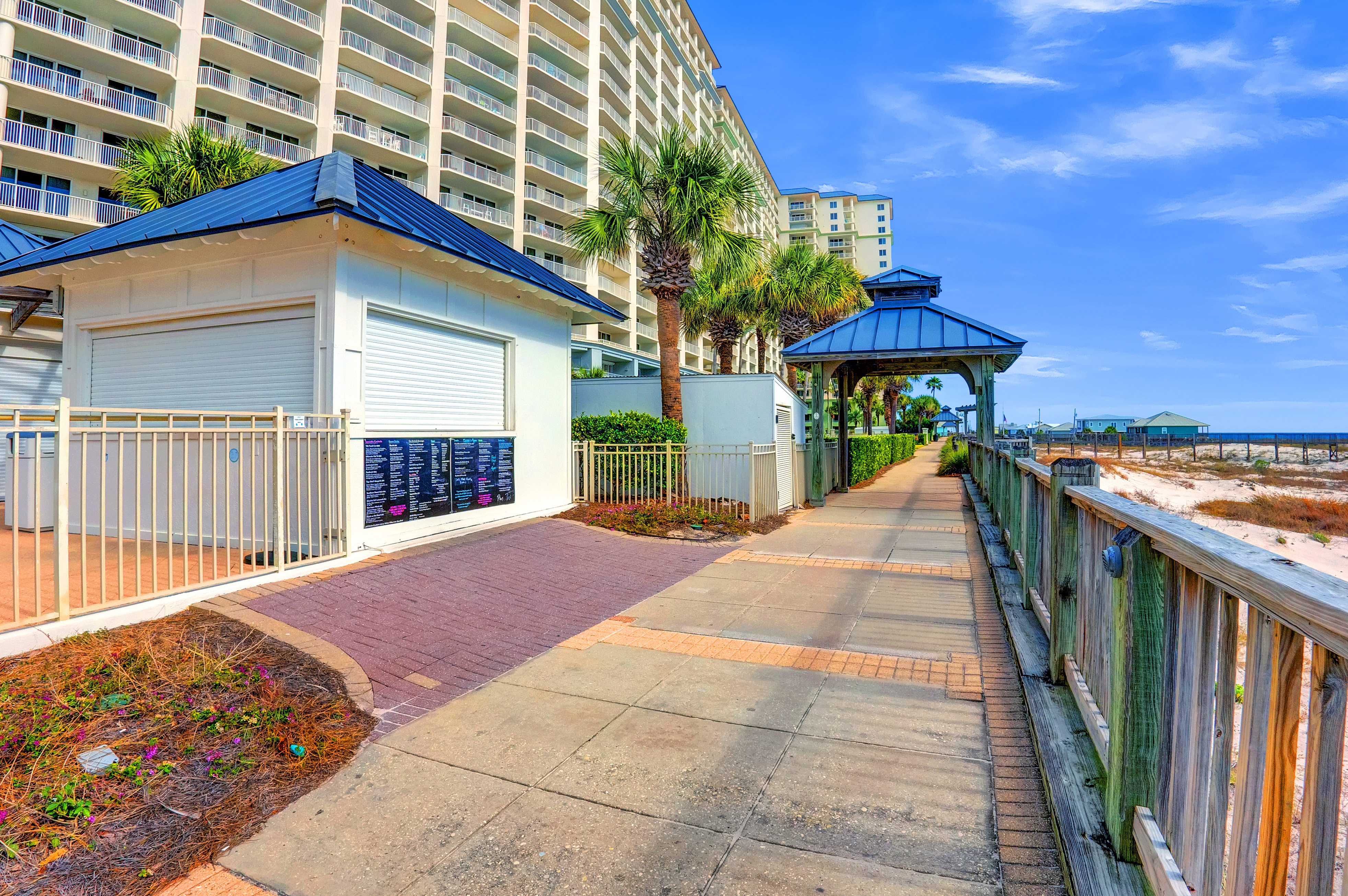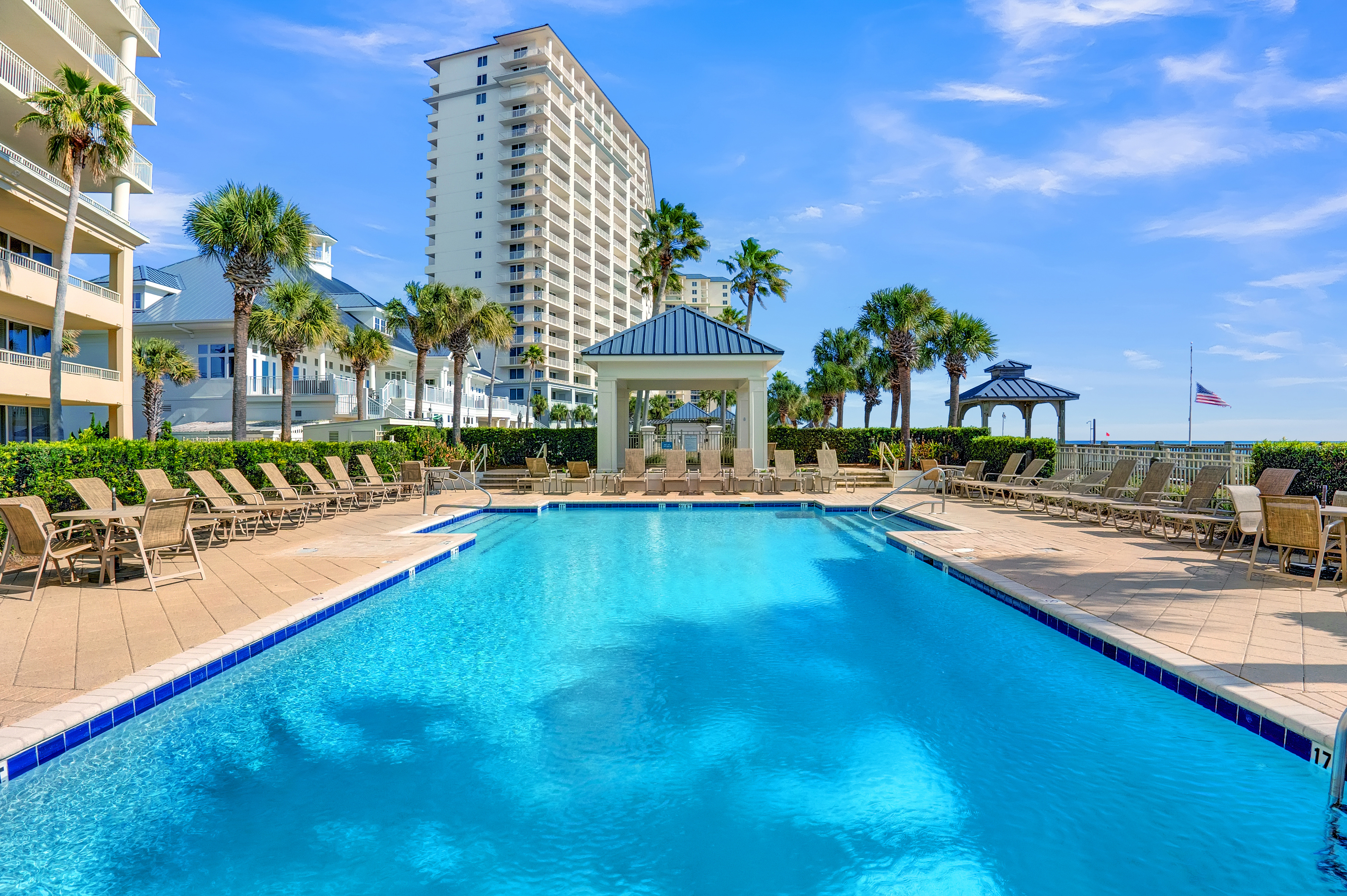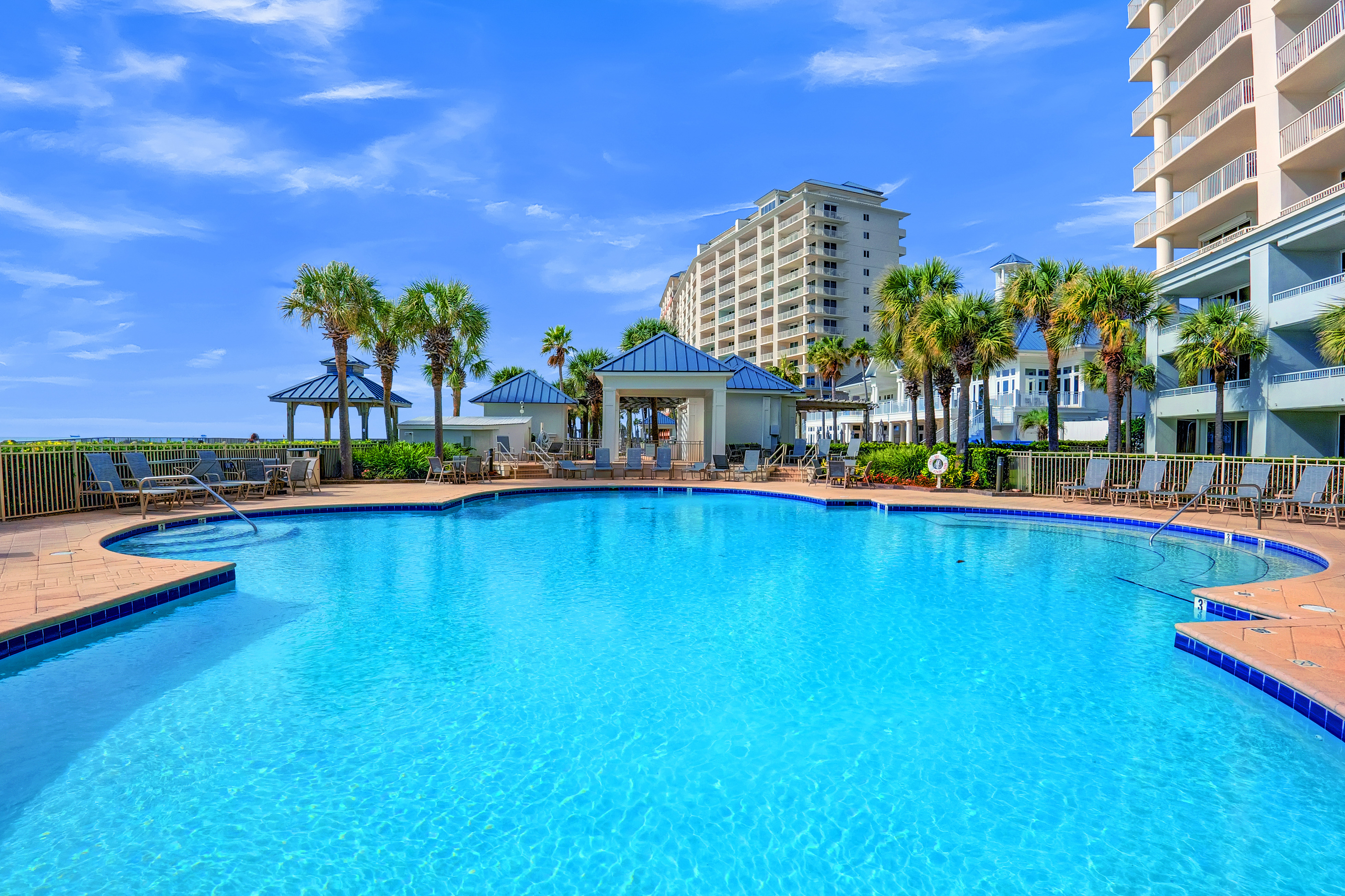 At the heart of the property lies the Gulf-front Clubhouse, a 26,000-square-foot hub featuring a heated indoor pool, outdoor pool (heated seasonally), kiddie pool, fitness center, game room, locker rooms, steam room, sauna, and a full-service spa and salon. Guests can enjoy coastal dining at the award-winning Coast Restaurant, offering fresh seafood and sushi by Chef Hamme, or grab a casual bite at the seasonal Gulfside Bar and Grill. (Please note: Clubhouse amenities require a guest fee, payable at the Clubhouse reception desk.)