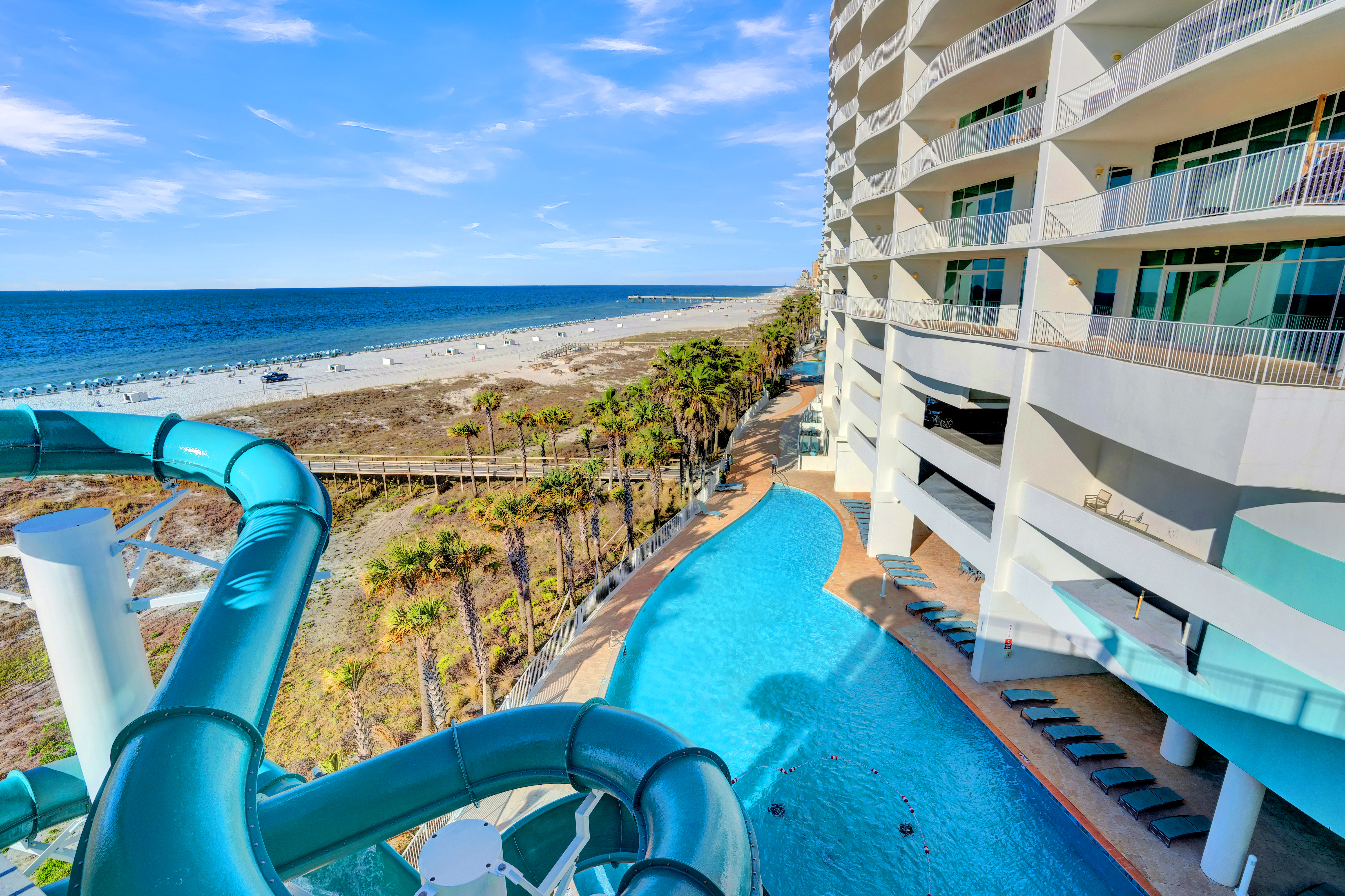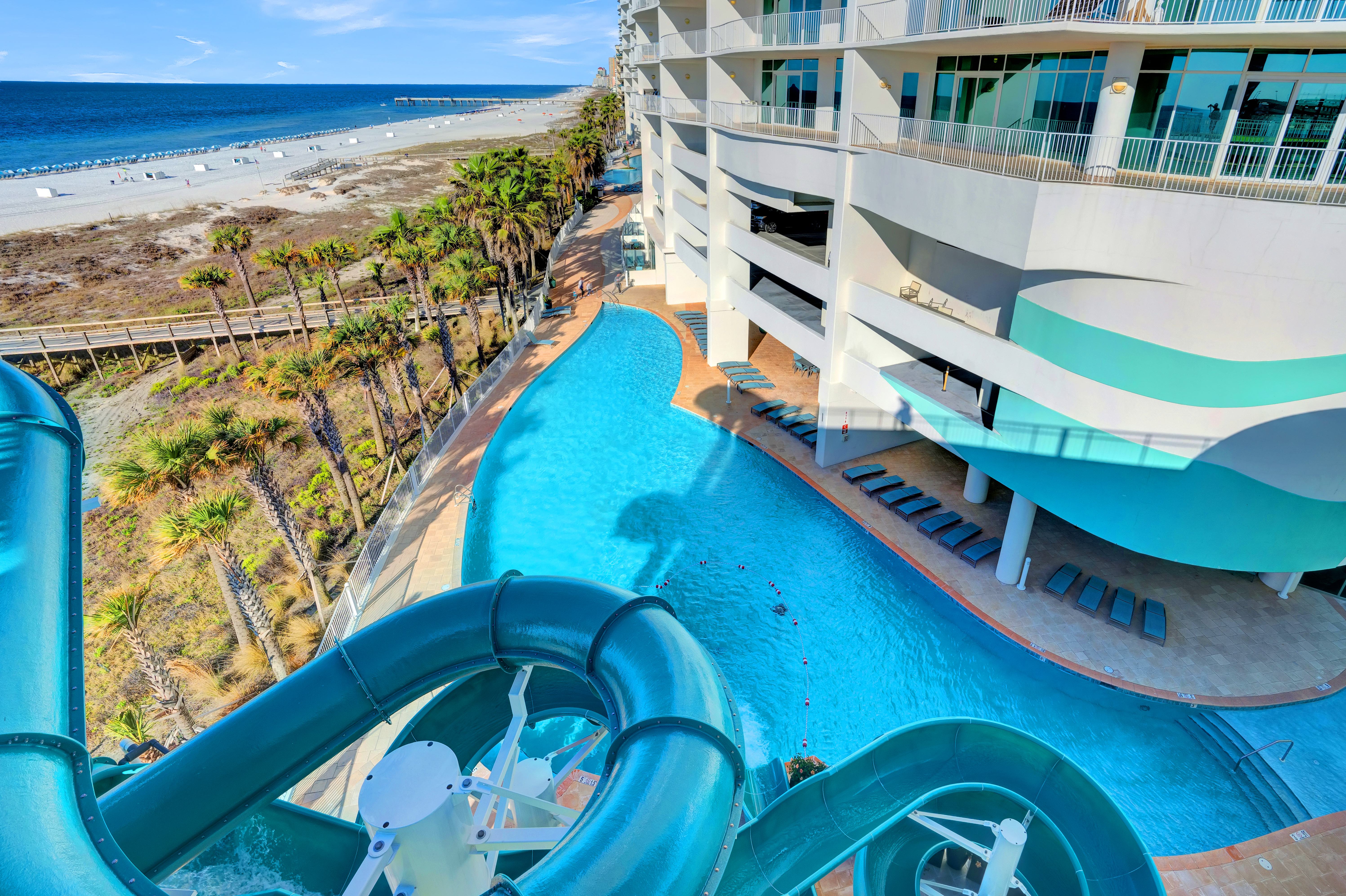 Rising high above the Gulf, Turquoise Place is the premier luxury resort in Orange Beach, offering an exceptional blend of comfort, style, and world-class amenities. Guests can enjoy multiple indoor and outdoor pools, along with a lazy river that’s perfect for a relaxing float under the Alabama sun.